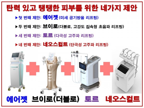 ‘네오스컬트(NeoSculpt)‘는 ‘단극성 고주파(mono-polar RF system)’를 이용한 장비로 통증이 거의 없어, 마취연고나 수면마취가 필요 없는 리프팅 장비입니다. 단독 치료로도 효과적이고, 에어젯, 브이로, 토르 등 기존의 다른 리프팅 장비와 병행하면 더 효과가 좋습니다.