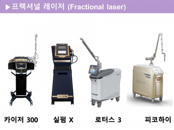 다양한 종류의 프랙셔널 레이저 (일명 프락셀)을 병행할 수 있으며, 최근에는 미세침(micro-needle)을 이용한 고주파 치료 요법이 널리 사용되고 있습니다.