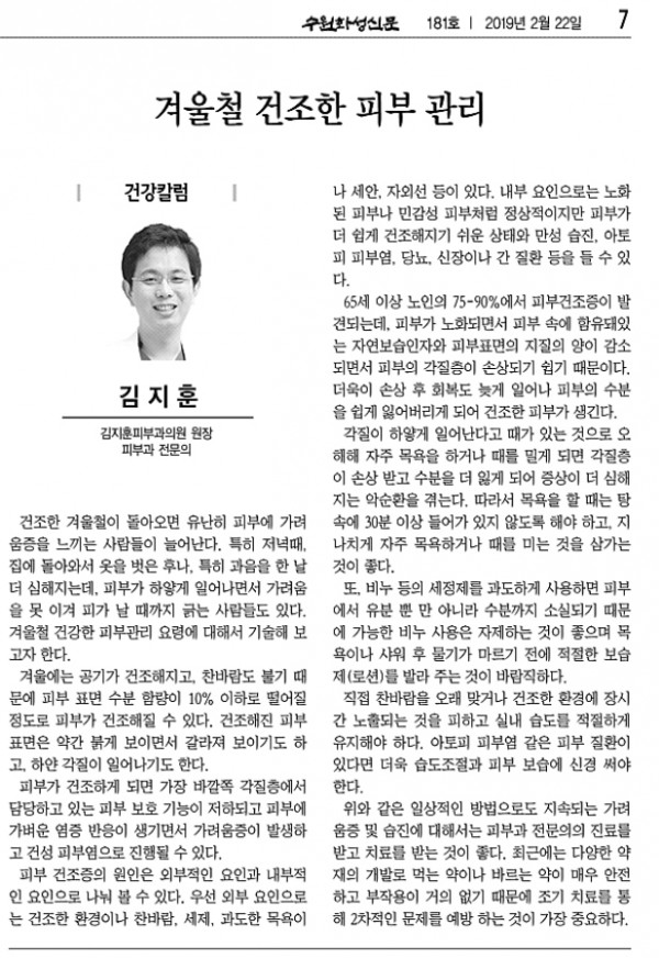 [건강 칼럼] 겨울철 건조한 피부 관리