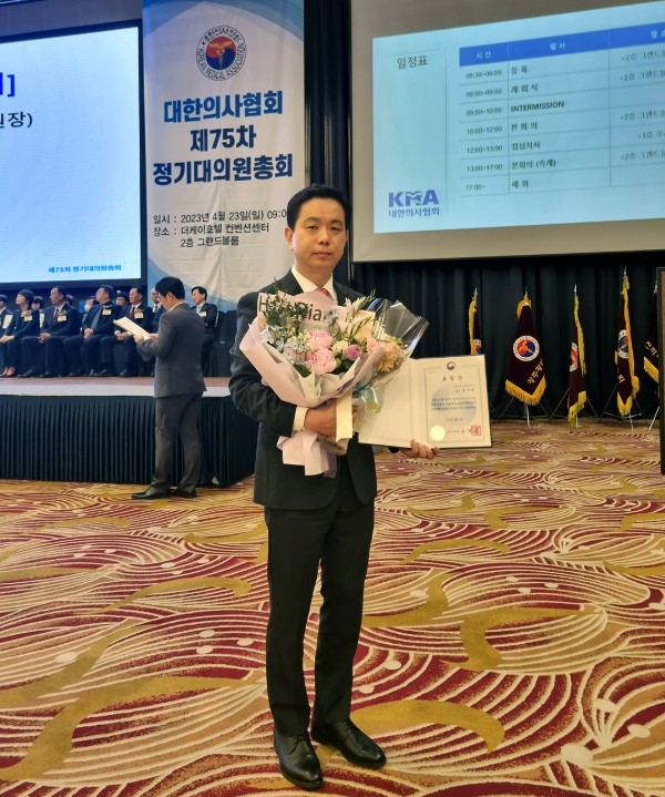 김지훈 원장은 평소 의료계 발전과 회원 권익 보호를 위하여 노력하였으며, 의사로서 지역사회 보건의료정책 반영에 기여한 공로를 인정받아 이번에 수상하게 되었습니다.